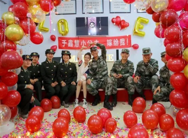 国庆中秋长假期间于鑫慧到王林所在军营探望10月7日,王林当着众多战友的面举办了一场浪漫的求婚仪式。