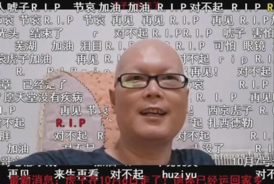 在得知虎子已经去世后,其视频中的画面几乎被“对不起”“R.I.P.”“默哀”“再见”等弹幕铺满。