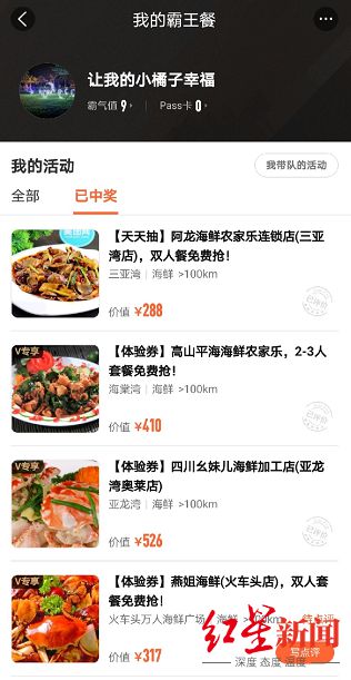 虎子提供的上述账号的“霸王餐”部分中奖记录截图。今年6月,记者向该博主住院治疗的山东潍坊人民医院核实情况,肿瘤内科一工作人员证实该博主确实身患肺癌,5月31日来到该医院,之前在海南三亚治疗。同时据虎子介绍,大众点评上显示的足疗店和2000元一晚的酒店是他为了凑任务数,提升抽中“霸王餐”的几率,并没有真正消费过。红星新闻记者从虎子提供的大众点评截图中看到,虎子共中了84次免费霸王餐。10月9日,“虎子的后半生”账号发布讣告称,虎子已经于2020年10月6号清晨5点30分在海南去世,年仅41岁。讣告中称,按照虎子遗愿,家属已于2020年10月8号将其葬在山东老家潍坊,后事基本办理完毕。“虎子生前深受大家的支持与帮助最后时刻没有来得及和大家说再见,表示遗憾,虎子录视频初衷就是为了把自己的5年的一些抗癌历经分享给大家,希望他的一些视频对同样处在病痛中的人有所帮助。虎子走了,带着对这个世界的留恋与不舍,但他更多的是感谢,感谢大家的帮助,感谢平台对他的肯定,怀着感恩的心带着遗憾离开了。