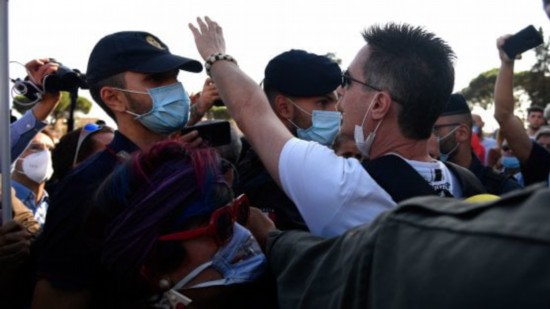 10日,罗马爆发3起示威游行活动,2千多名示威者反对政府强制戴口罩和实行紧急状态等防疫措施。据意大利媒体报道,有抗议者与现场记者发生了撕扯。期间一名抗议者因不带口罩且拒不出示身份证件而被警方逮捕。