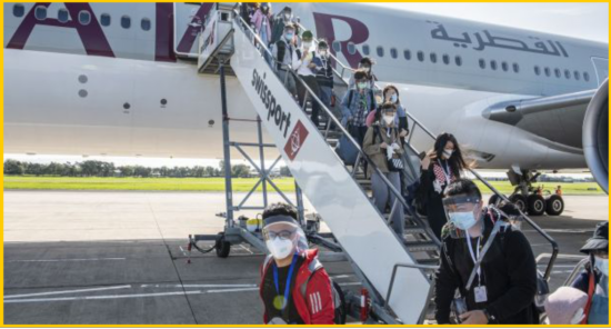 △10月3日,一架乘有400名中国学生的包机抵达贝尔法斯特机场