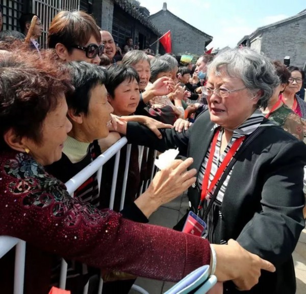 老一团团长、开国少将乔信明的女儿乔春雷一下车,就被眼前的场面感动得热泪盈眶、无以言表。她擦擦眼角的泪水,上前跟当地居民一一深情握手。