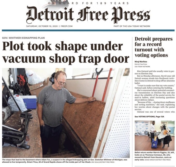 美国媒体于10月10日披露密谋绑架密歇根州州长惠特默案件的更多相关内容。绑架惠特默的民兵组织在大急流城(Grand Rapids)一家吸尘器店的地下室如何施行绑架计划,以及面对抓捕时如何使用燃烧弹袭击警车等细节浮出水面。