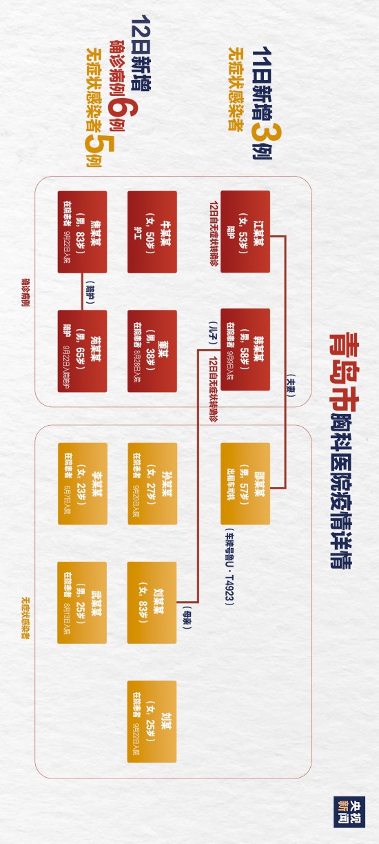 根据流调结果,越来越多的证据显示,本次疫情累计发现的6例确证病例和6例无症状感染者都与青岛市胸科医院高度相关。