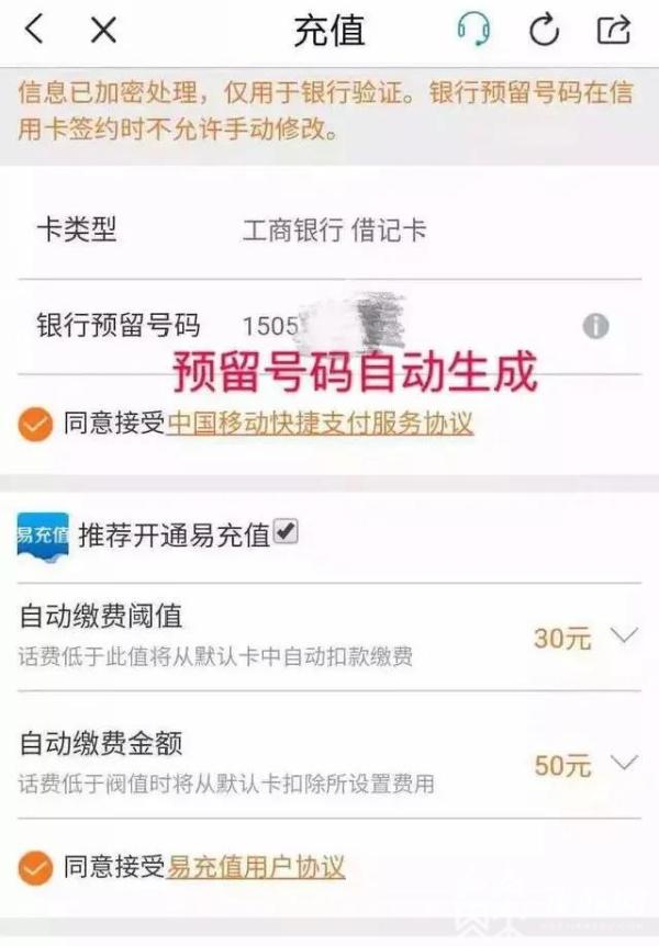 一般用手机进行网上充值,正规的页面是这样的:填写银行卡号,预留号码不需要手动输入,而在电脑上选择银行卡充值后,会直接跳转到银行官方支付页面,不需要填写完整卡号和身份证号。