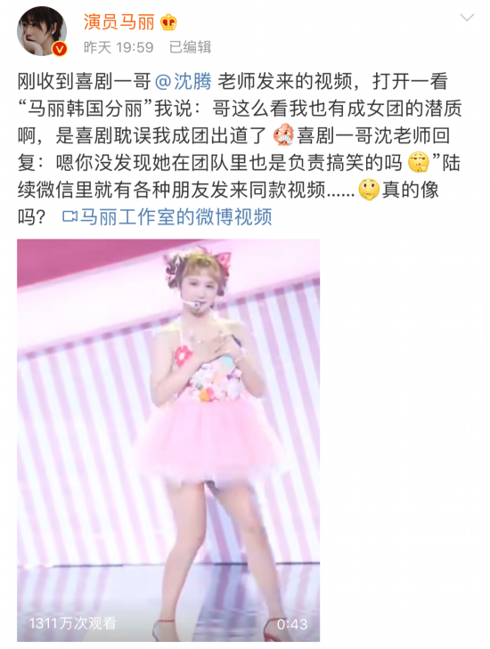 最近,一段演员“马丽”跳韩国女团舞的视频火了!