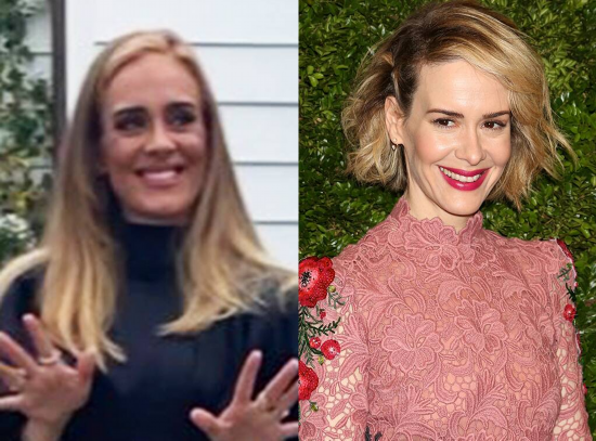 又又又瘦了的阿黛尔,跟香蕉姐Sarah Paulson越来越像,