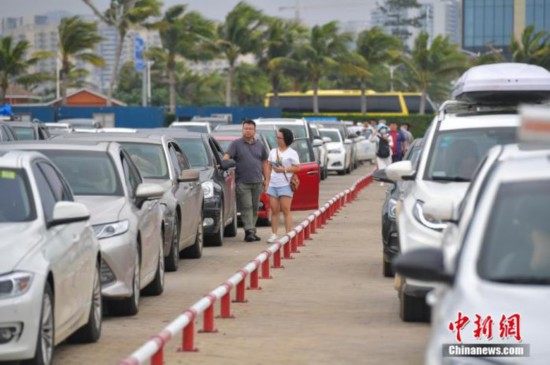 资料图:在海口新海港码头排队等待上船的自驾游游客。 骆云飞 摄