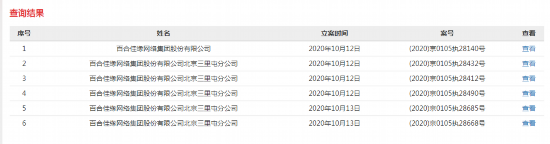 值得注意的是,近日,百合佳缘网络集团股份有限公司子公司百合佳缘网络集团股份有限公司北京三里屯分公司新增5条被执行信息,累计执行标的339188元,执行法院均为北京市朝阳区人民法院。