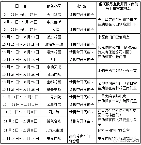 老用户可以任意选择在以上时间段至相应的小区服务点结算交费,新用户请携带身份证原件和房产证原件签订合同。