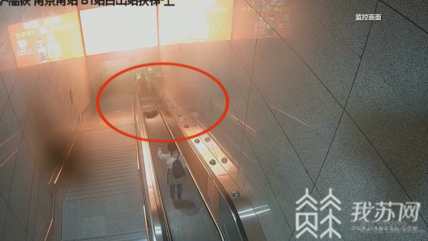 10月11日,南京南站1号站台出站口,一个行李箱像导弹一样在扶梯上滑落,砸向了下面一家三口,妈妈李女士为了保护孩子,自己的脚部被砸伤,倒地无法站起。