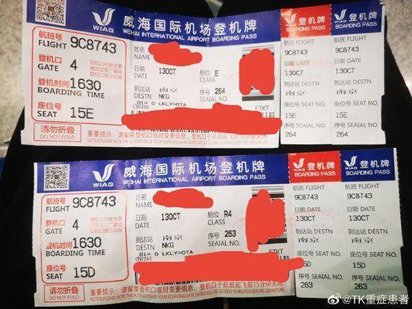 当事人提供的登机牌。图源当事人微博