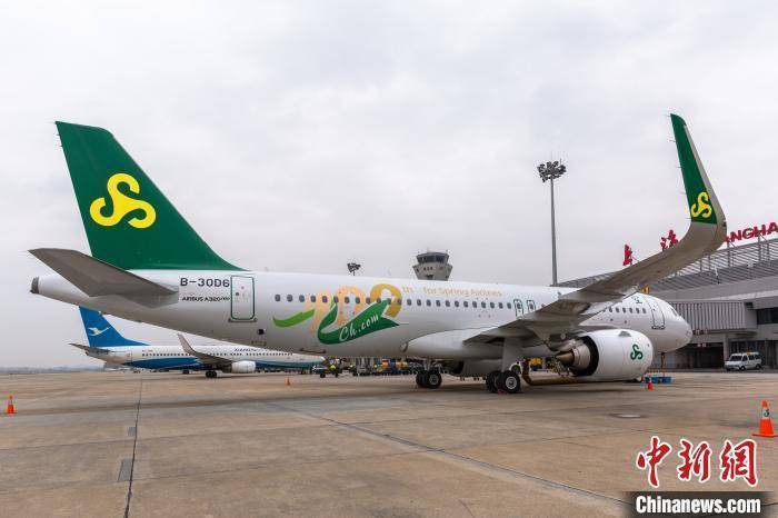 机身绘有第100架涂装的春秋航空A320neo准备从上海虹桥机场起飞 供图