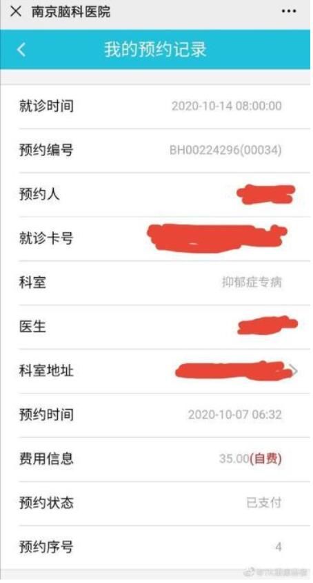 当事人提供的挂号信息。图源当事人微博