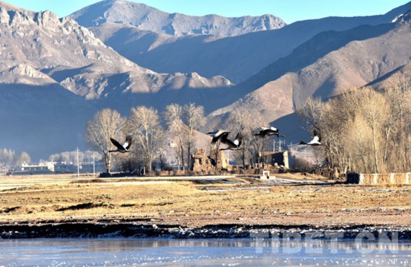 图为黑颈鹤在雅鲁藏布江中游河谷地带越冬(资料图) 摄影:王媛媛