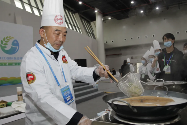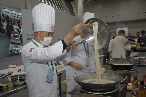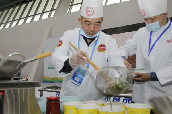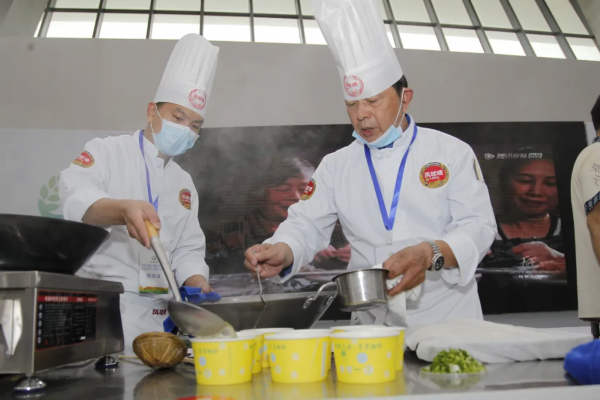 展演现场各地大厨汇聚一堂,展现精彩厨艺,并邀请观众们品尝。