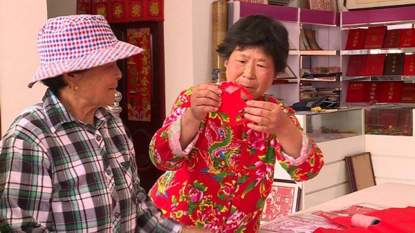 如今,和张桂英一起学习剪纸和刺绣的村民已有近百人。“他们只要想干,我全部给教会,把我的活都给他们干,我给加工费,最多给50元一天。”