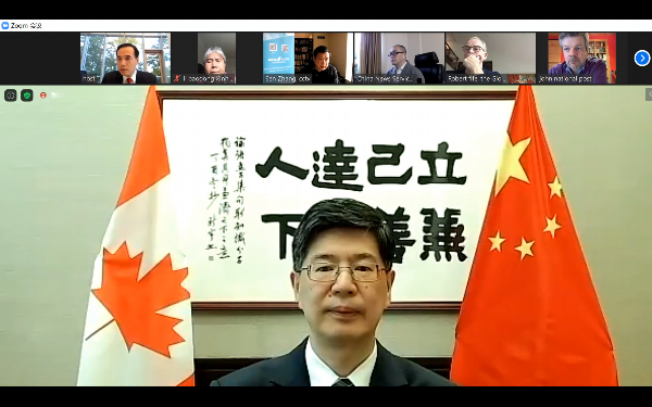 10月15日,驻加拿大大使丛培武在使馆举行媒体视频记者会,接受媒体集体采访。加通社、《环球邮报》、《国家邮报》、《国会山时报》、《多伦多星报》、加拿大电视台、多元文化电视台以及新华社、央视、中新社等10家中外媒体记者参加,使馆推特账号进行同步在线直播。丛大使就中加建交50周年介绍情况,并就中国和平发展、孟晚舟事件、涉港、涉疆等问题回答记者提问。