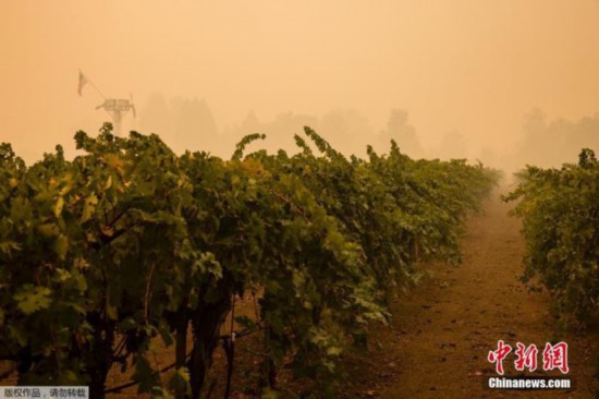 当地时间2020年9月30日,美国加州纳帕谷,蔓延速度最快的“玻璃大火”(Glass Fire)肆虐纳帕著名的葡萄酒产区,已造成3人死亡,葡萄园区遍地废墟。