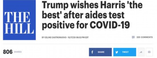 路透社15日曾报道称,哈里斯助手新冠病毒检测呈阳性,哈里斯将暂停竞选活动。报道称,哈里斯的通讯主管和一名飞行机组成员新冠检测结果呈阳性。拜登团队竞选经理则表示,检测结果呈阳性的人员在48小时内都未与拜登、哈里斯或其他工作人员接触过。