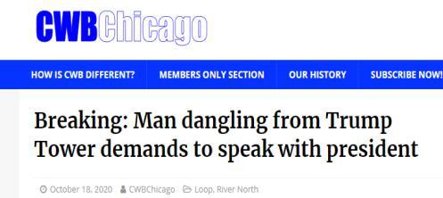 (“CWBChicago”:突发,男子悬吊在特朗普大厦外,要求与特朗普对话)