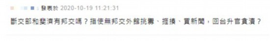 也有网友说,“台湾和斐济有‘邦交’吗?指使无‘邦交’外馆挑衅、挨揍、买新闻,回台升官贪渎?”