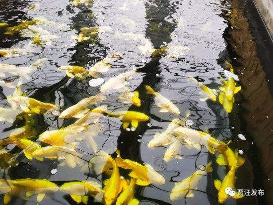 以锦鲤搭台,以“公司+农户”方式,贾汪区在省级经济薄弱村许阳村精心打造锦鲤特色小镇,鼓励企业免费为养殖户提供鱼苗、饲料、病害防治和技术培训以及成鱼回收、销售,带动许阳村400多户农户从事锦鲤养殖,每条鱼可赢利200-300元左右,农户每年可增收2万余元,大大加快了脱贫致富步伐。