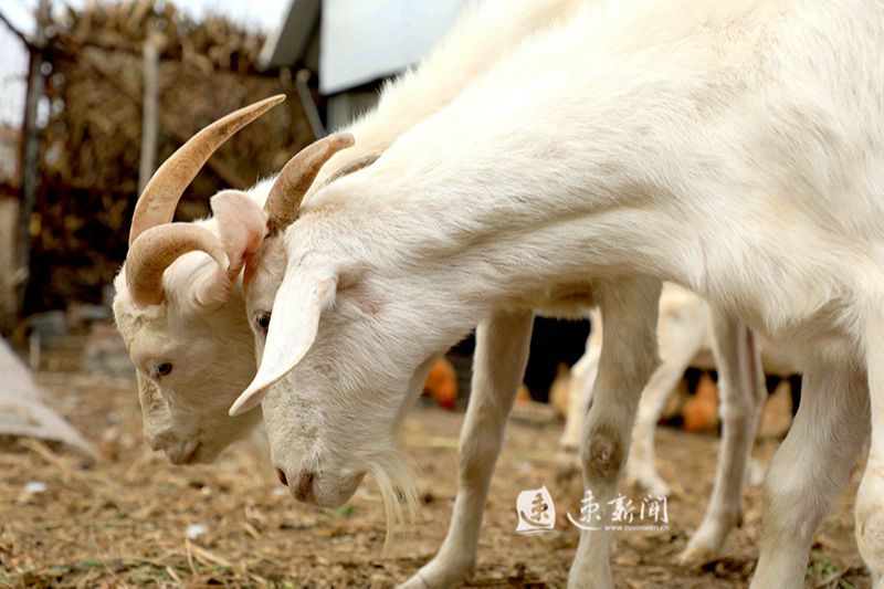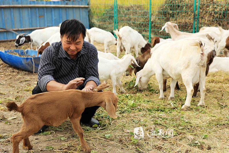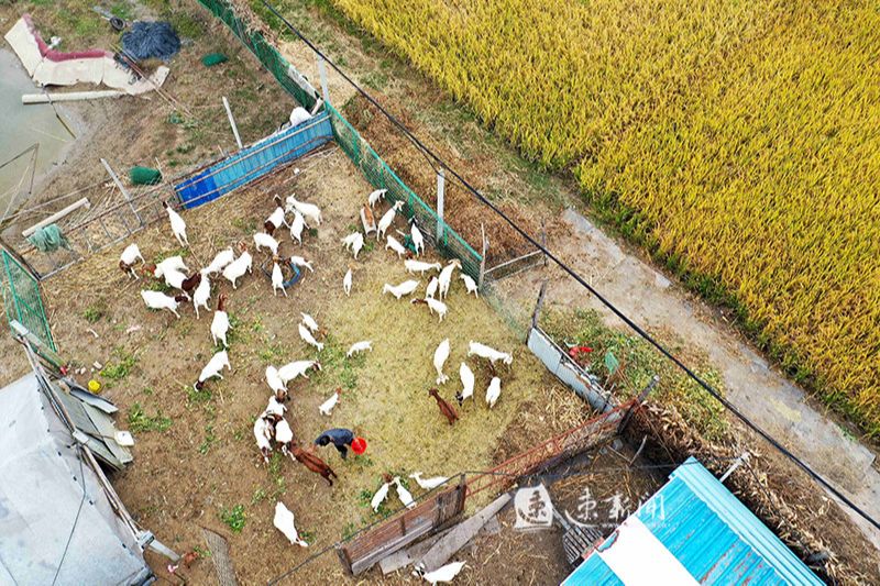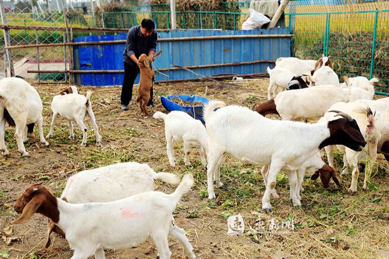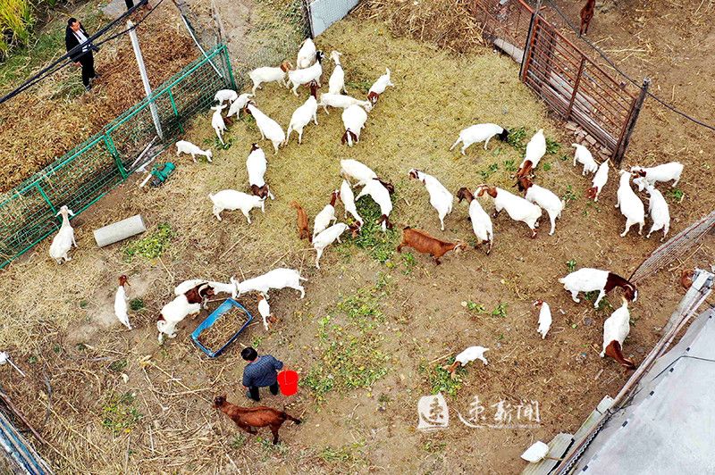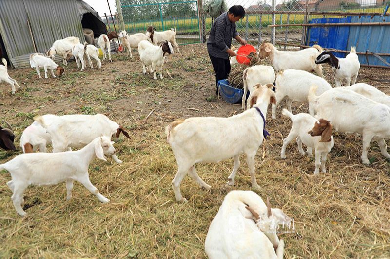 10月15日,在宿迁市沭阳县塘沟镇碾盘村,村民解建江正在给饲养的山羊喂食。