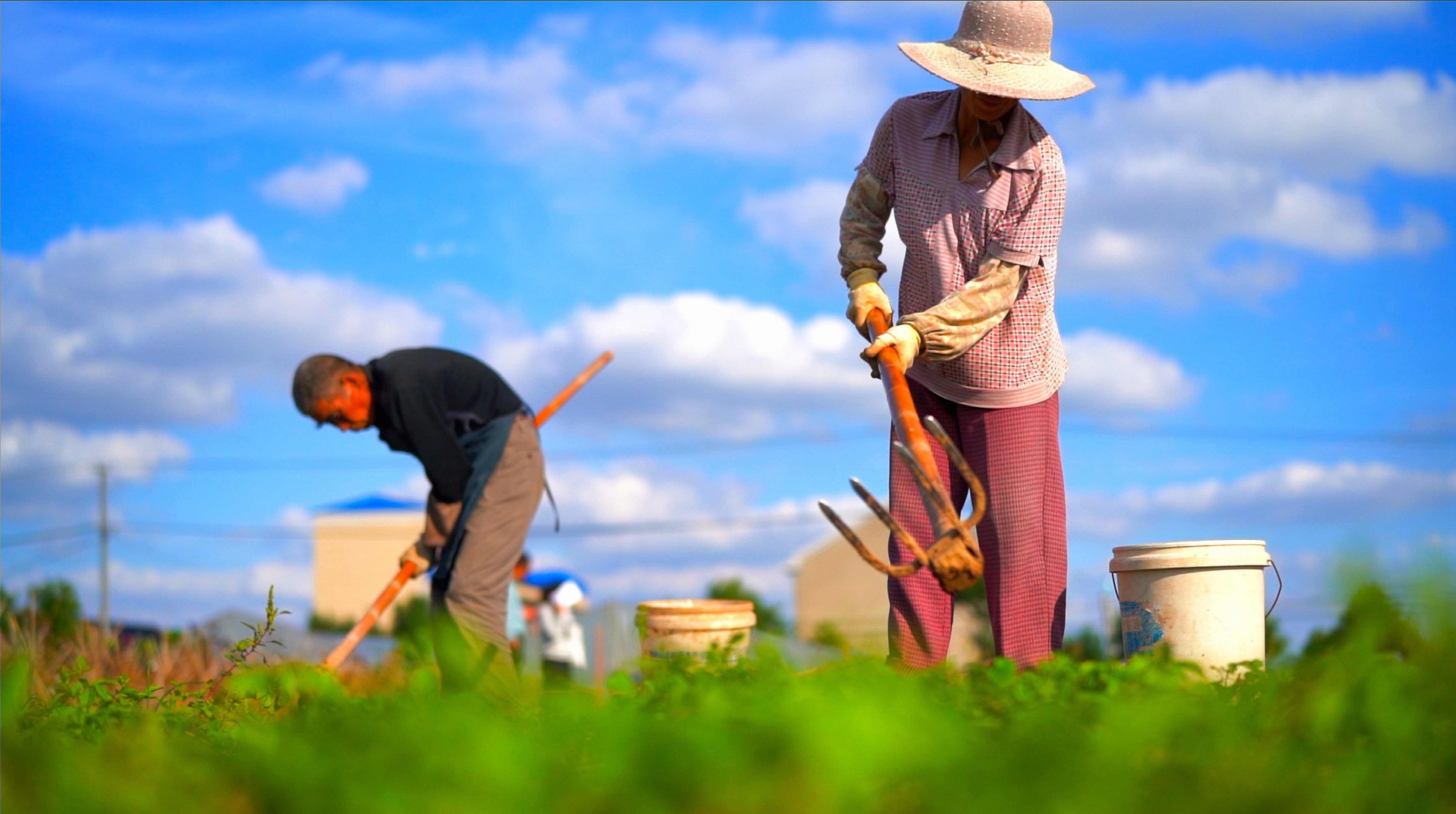 一钉耙下去,一大块泥土翻起,75岁的宋汉如熟练地将土块敲碎,双手麻利地捡起一颗颗滚圆的香芋,扔进塑料大桶。“今年受雨水影响,香芋的数量相对少了一些。”宋汉如边干活边说。