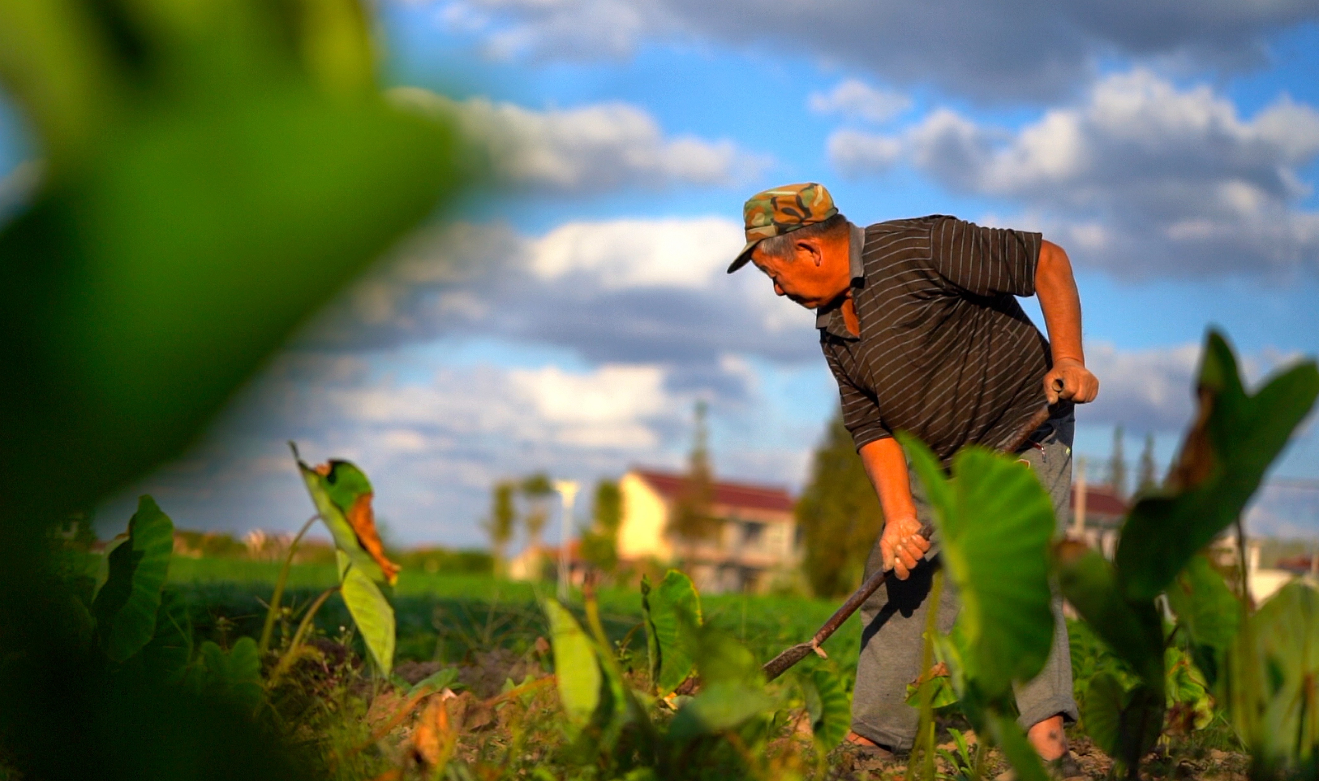 除了合作社连片种植外,王鲍镇黄英村的农户们也各自在自家田头忙活着。3组的倪仲兵称得上是村里的种植能手了,76岁的老倪把自家的一亩三分地经营得有声有色,一锹撅出一颗大芋头,黄土沾满了他的双手,老倪的脸上却笑开了花。