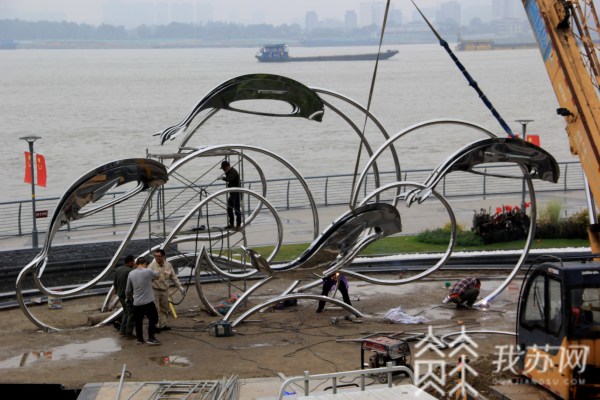 今天(10月21日),鼓楼区下关滨江外滩平台安上了4只憨态可掬的江豚。因为这里景观提升,经常有江豚出没,为方便市民观赏江豚,特地利用滨江外滩平台上,建成这样一处景点。