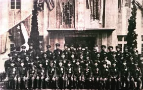 1950年9月,杨根思当选为全军英模代表,出席全国英模代表大会。图为出席全国英模代表大会的解放军第二十军英模合影(第二排右六为杨根思)