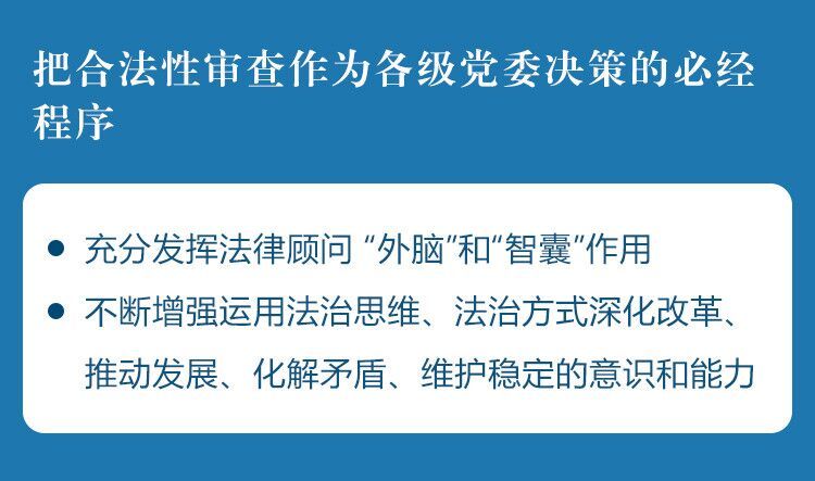 会议听取了第二届省委法律顾问和法律专家库成员选聘工作情况汇报,强调要深入学习贯彻习近平总书记重要指示要求,把合法性审查作为各级党委决策的必经程序,认真听取法律顾问意见,充分发挥法律顾问 “外脑”和“智囊”作用,不断增强运用法治思维、法治方式深化改革、推动发展、化解矛盾、维护稳定的意识和能力。