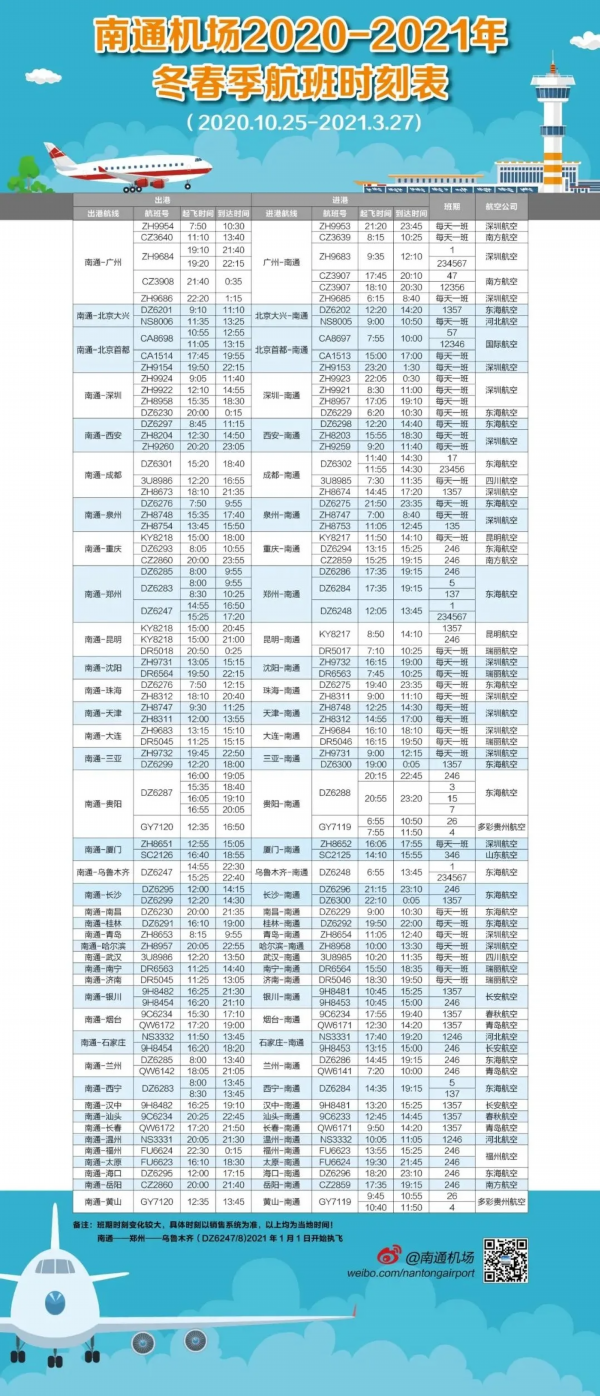 2020年10月23日 15:37:06 | 来源:南通机场微信号