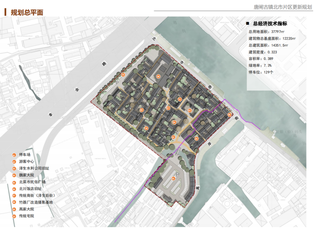 唐闸古镇北市片区更新工程,占地约40亩,其中1964平方米为历史价值较高的传统建筑,另外还有历史价值一般的但保存相对完整的传统建筑、一般建筑、厂房建筑。