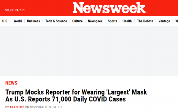 这不是特朗普第一次因为口罩问题“关注”梅森了。今年9月,特朗普在白宫举行记者会时,路透社一名记者刚要提问时,特朗普却突然打断了他,以他的声音“太过模糊”为由要求他摘下口罩。然而,这名记者拒绝了特朗普的要求,并回答说:我可以大点声说话。这名记者正是梅森。