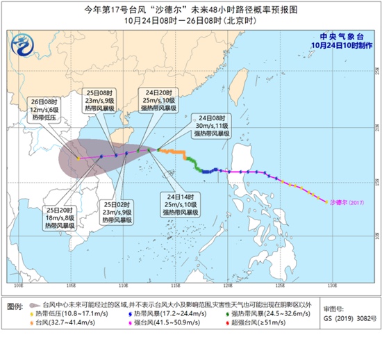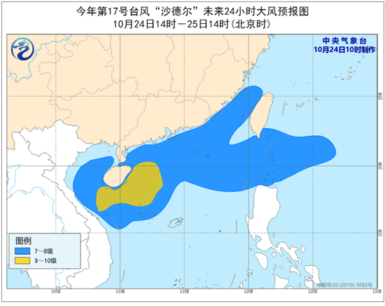 中央气象台10月24日10时继续发布台风黄色预警:
