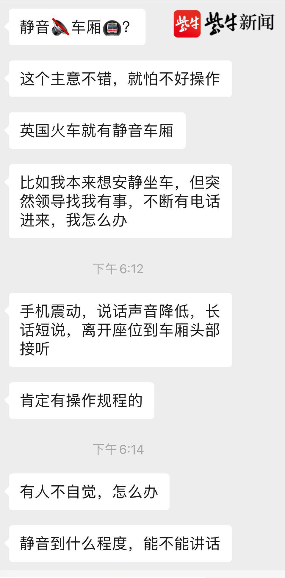 大声喊叫的“熊孩子”、电脑会议、手机公放………不少旅客都为旅途中不愿听到的一些声音“伤脑”。尽管制造“声音”的旅客也有不得已的苦衷,但也常有因此而引发的矛盾见诸报端。有了“静音车厢”就好多了,需要休息的旅客可以睡个好觉。不过,也有不少网友提出疑问,这个“静音车厢”,到底静音到什么程度,有没有相关规定?能不能讲话?手机是不是都要调成震动?打呼噜的能不能买?突然有工作要处理,比如需要打一个较长的电话,或者临时要开个重要的电话会议,想调到普通车厢可以吗?………不少网友也认为,这个问题不能完全靠制度管,全民素质提高很重要。