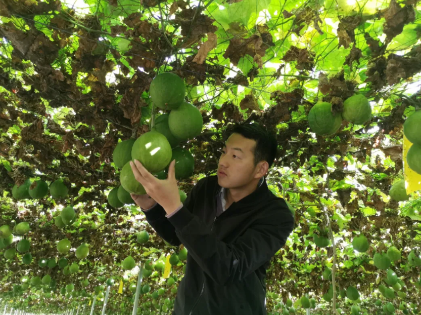 “这边的10亩地是试种的18号新品种,这个品种的瓜蒌籽壳有点硬,但是籽很大,先看看市场反响,如果反响好的话,明年继续扩大种植面积。”沙军说,“以前我家是贫困户,现在我想带领我们村村民一起致富。”长期在田间工作,皮肤被晒得有点黑,说话声音宏亮,这个26岁的大男孩有着超乎年龄的成熟稳重,话语间透露着坚定,这大概与他的经历有很大关系。