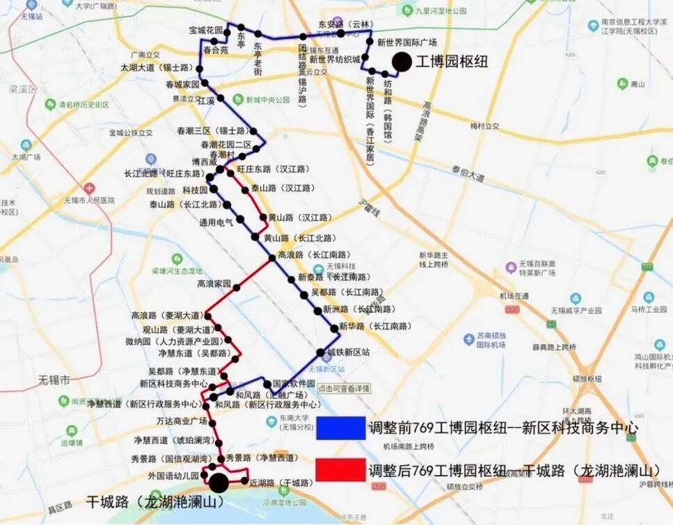 优化769路:由工博园枢纽—新区科技商务中心,调整为工博园枢纽—干成路(龙湖艳澜山)。