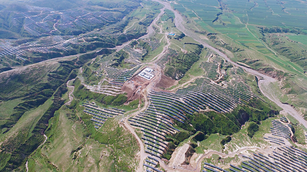 ▲山西广灵县裴家洼光伏扶贫电站俯瞰