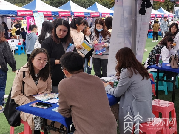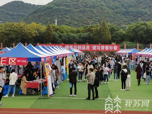 我苏网讯 10月29日,无锡市太湖学院举行江苏省百校联动就业活动暨无锡太湖学院太湖创意职业技术学院2021届毕业生校园招聘会,超过千家企业前来招聘,红豆、法尔胜等知名企业现场抢人。