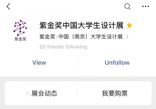 如何操作?看下图: 第一步:关注“紫金奖中国大学生设计展”
