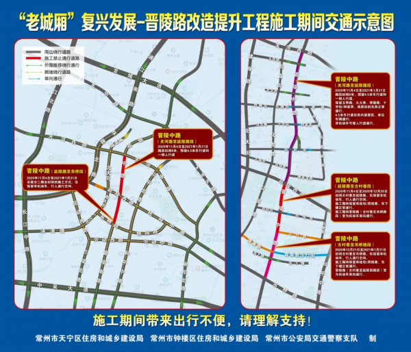 自2020年11月4日至2021年1月31日,晋陵中路(关河路至吊桥路)封闭施工