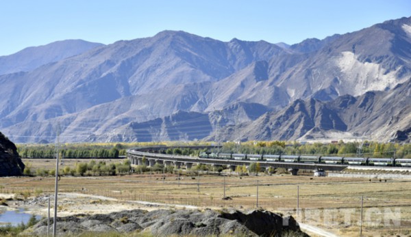 图为一列火车行驶在拉日铁路上 摄影:王媛媛