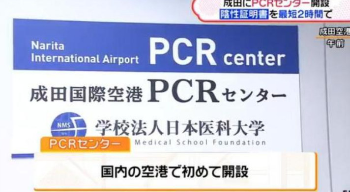 11月2日,位于日本千叶县的成田机场开设了新冠病毒核酸检测中心,乘客在登记检测后,最快2小时就可获得阴性证明。(图片来源:日本富士电视台视频截图)