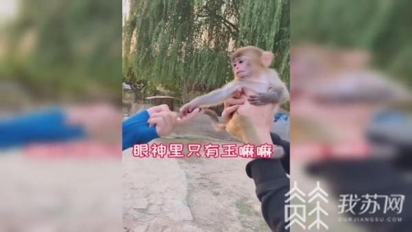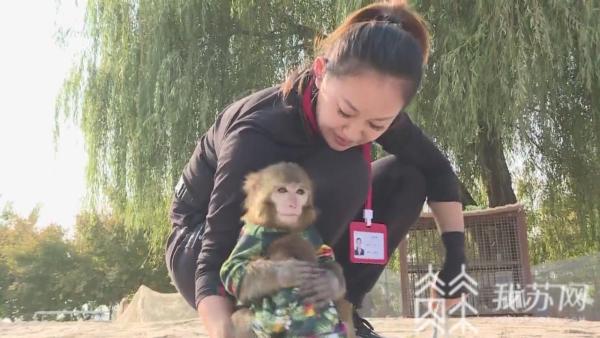 瞧,穿着时尚,“萌”态可掬的小猕猴就是视频里的“网红猴”,它叫“土豆”,已经六个月大了。抱着它,不停地逗它玩儿的就是饲养员万玉。