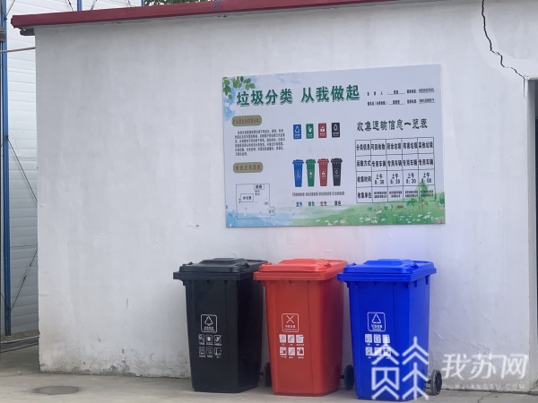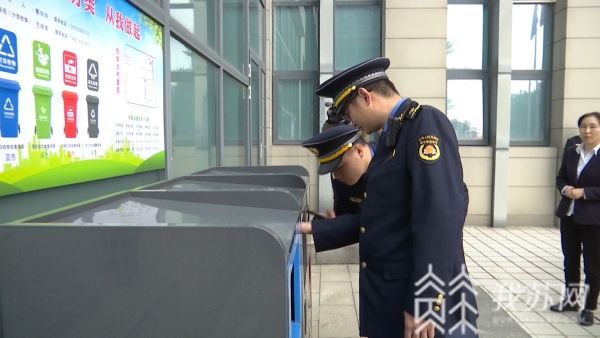 上午十点,记者跟随南京溧水区城管执法人员来到辖区内的一家企业,首先对企业的垃圾分类投放点进行检查。南京市溧水区永阳街道城管执法中队张太平现场确认,有害垃圾桶里面是废弃灯管,是按照规定进行分类投放的,可回收垃圾桶内是纸盒子、可回收的垃圾,也是分类投放的。