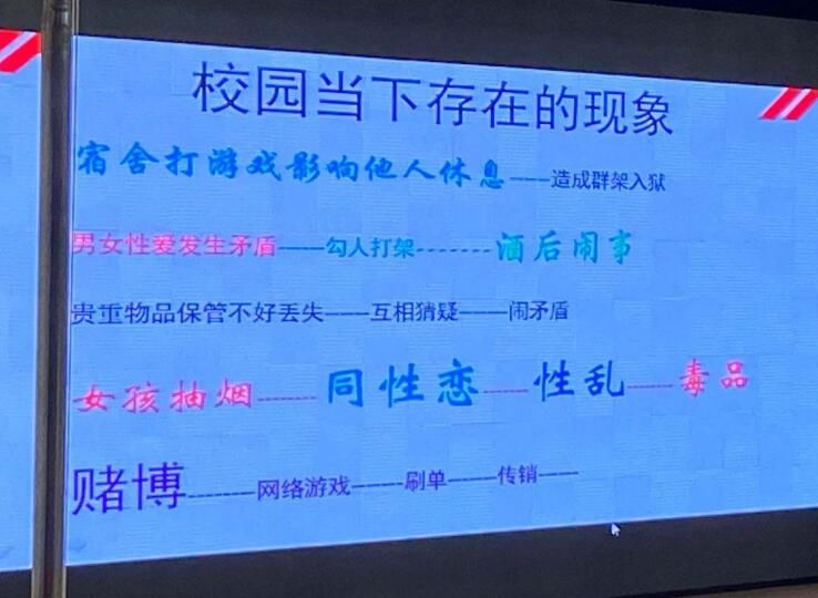 “同性恋”“女孩抽烟”,在大学新生教育讲座中,与“性乱”“毒品”被列在一起?日前,沈阳师范大学的一场新生教育讲座引发网友关注。