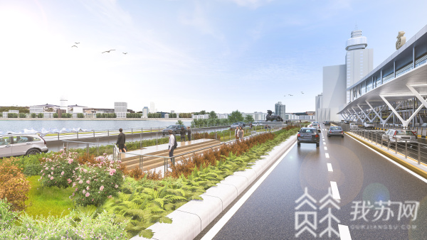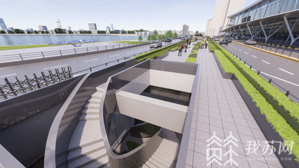 南京市环湖办站前南广场片区负责人徐冰介绍:“通过旋转楼梯上到二楼送客平台,可以俯览整个玄武湖的景色,同时也能看到远处紫金山的景色。”